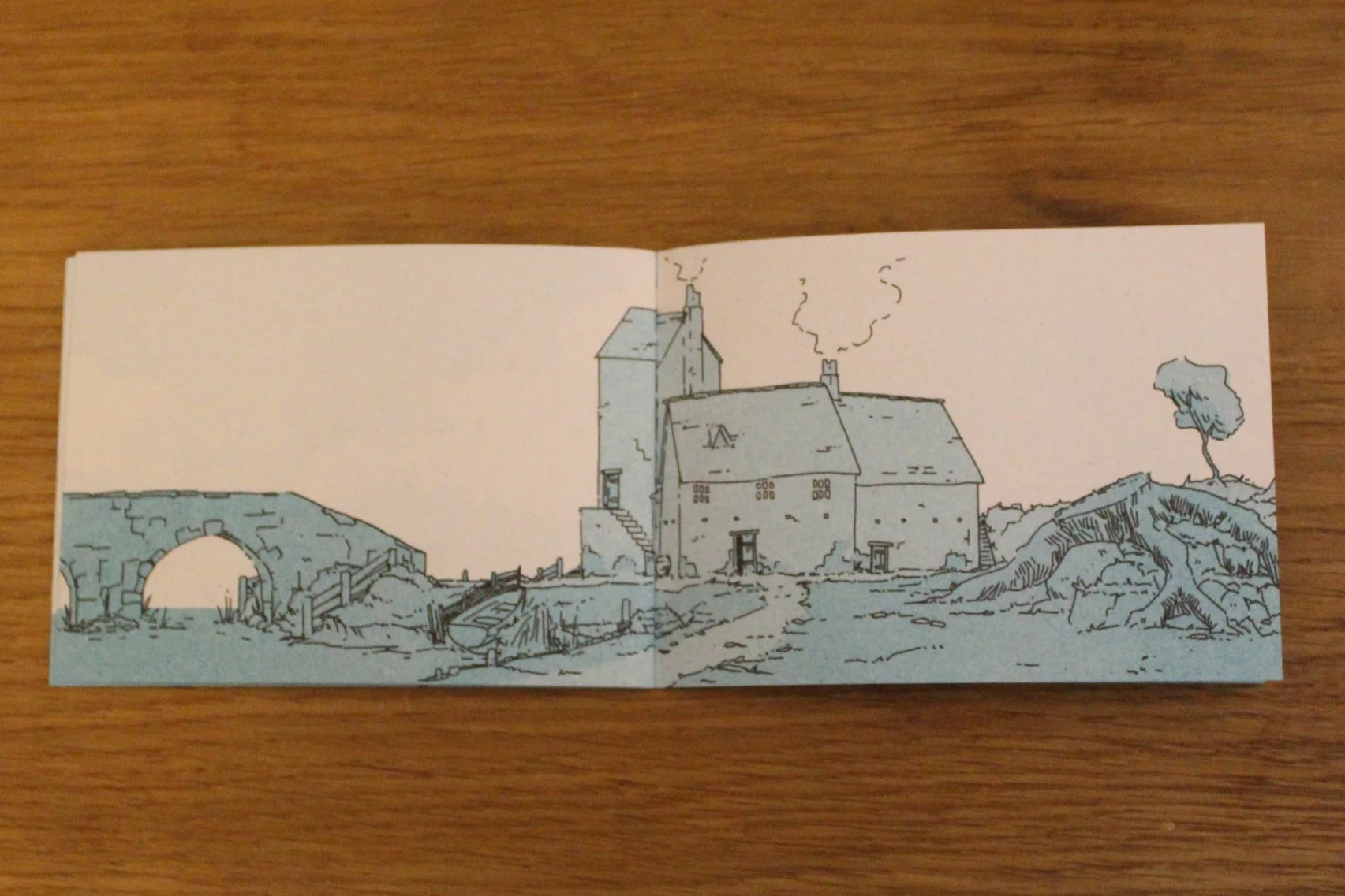A short wordless zine detailing 8000 years of one point of land as it is has changed over the years and into the future.